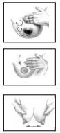 yemas de los otros dedos bajo el pezón a las seis, formando la letra “C” con la mano, como se demuestra.